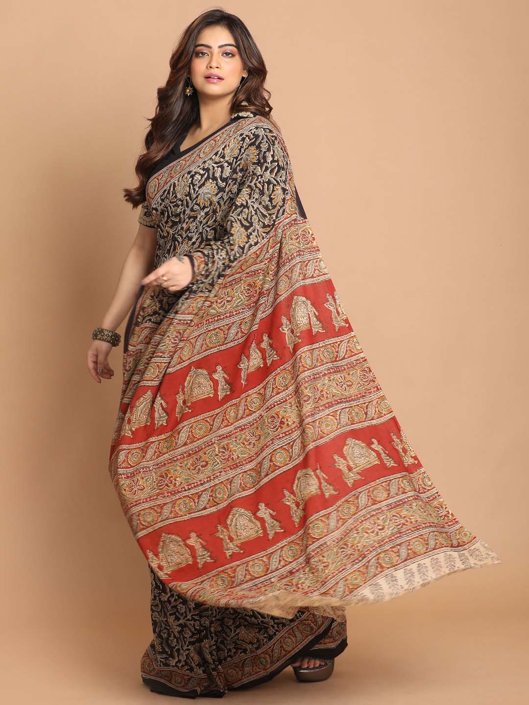 Save 60%Indethnic Kalamkari Handblock Mulmul Cotton Saree - View 1